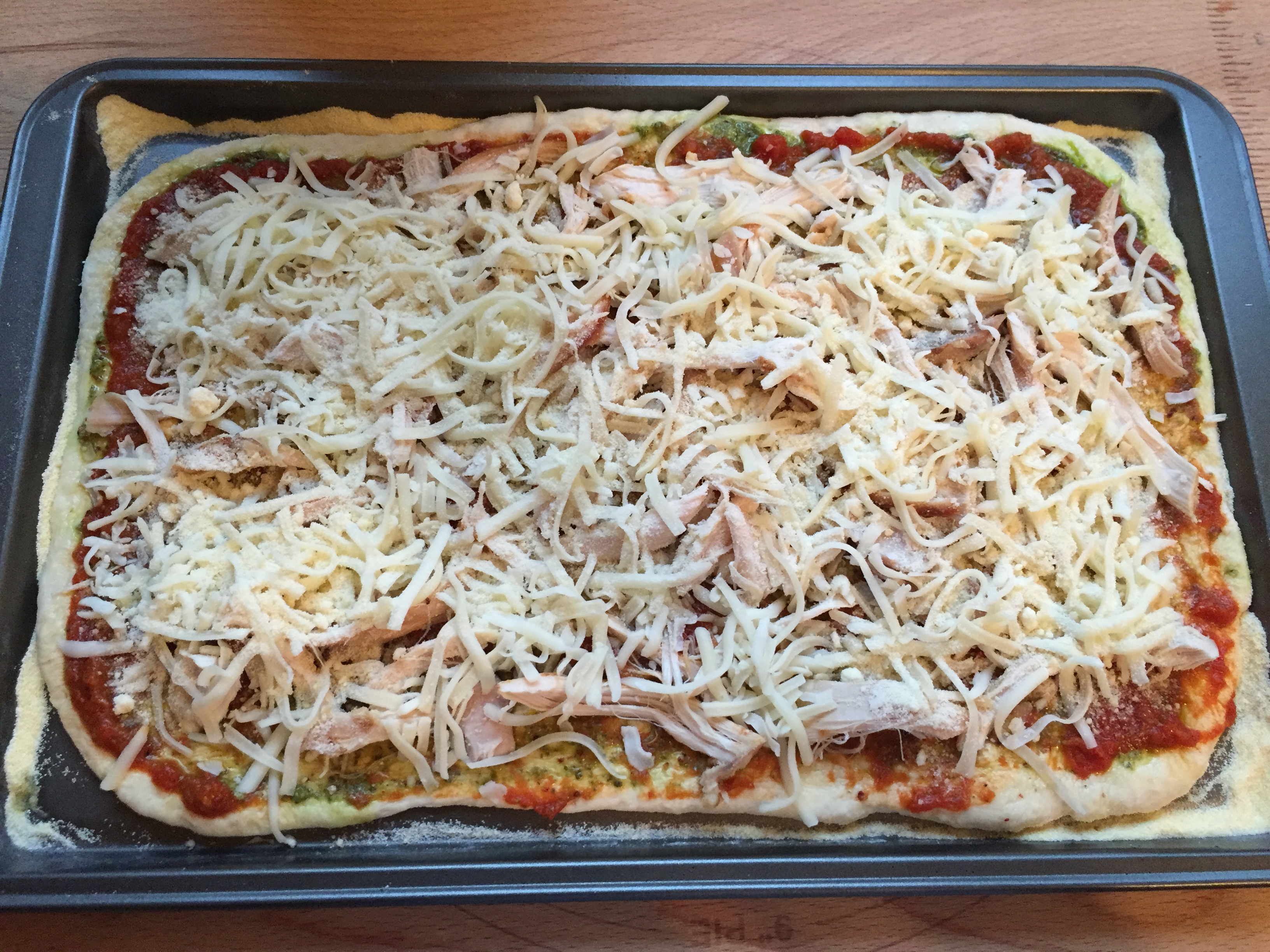 Leftover Edition: Chicken pizza Published May 14, 2016 at 3264 × 2448 Chicken pizza Chicken pizza, ready to be baked