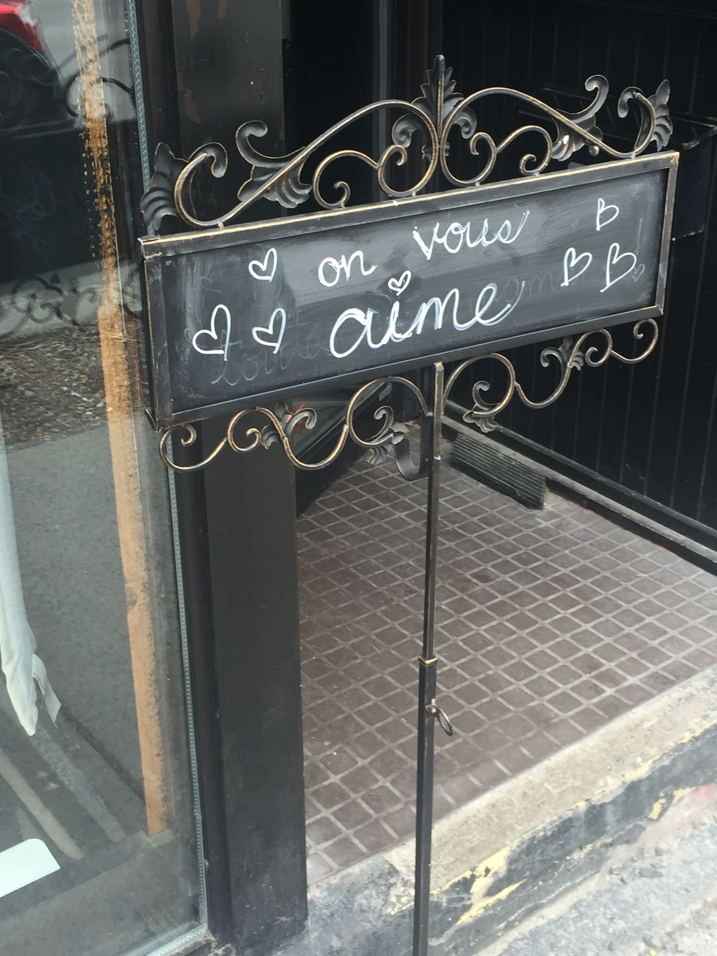 Régine Café Published May 15, 2016 at 2448 × 3264 A sweet message from the restaurant team to the clients, “On vous aime” or “We love you”. Brunch at Régine Café, Montréal