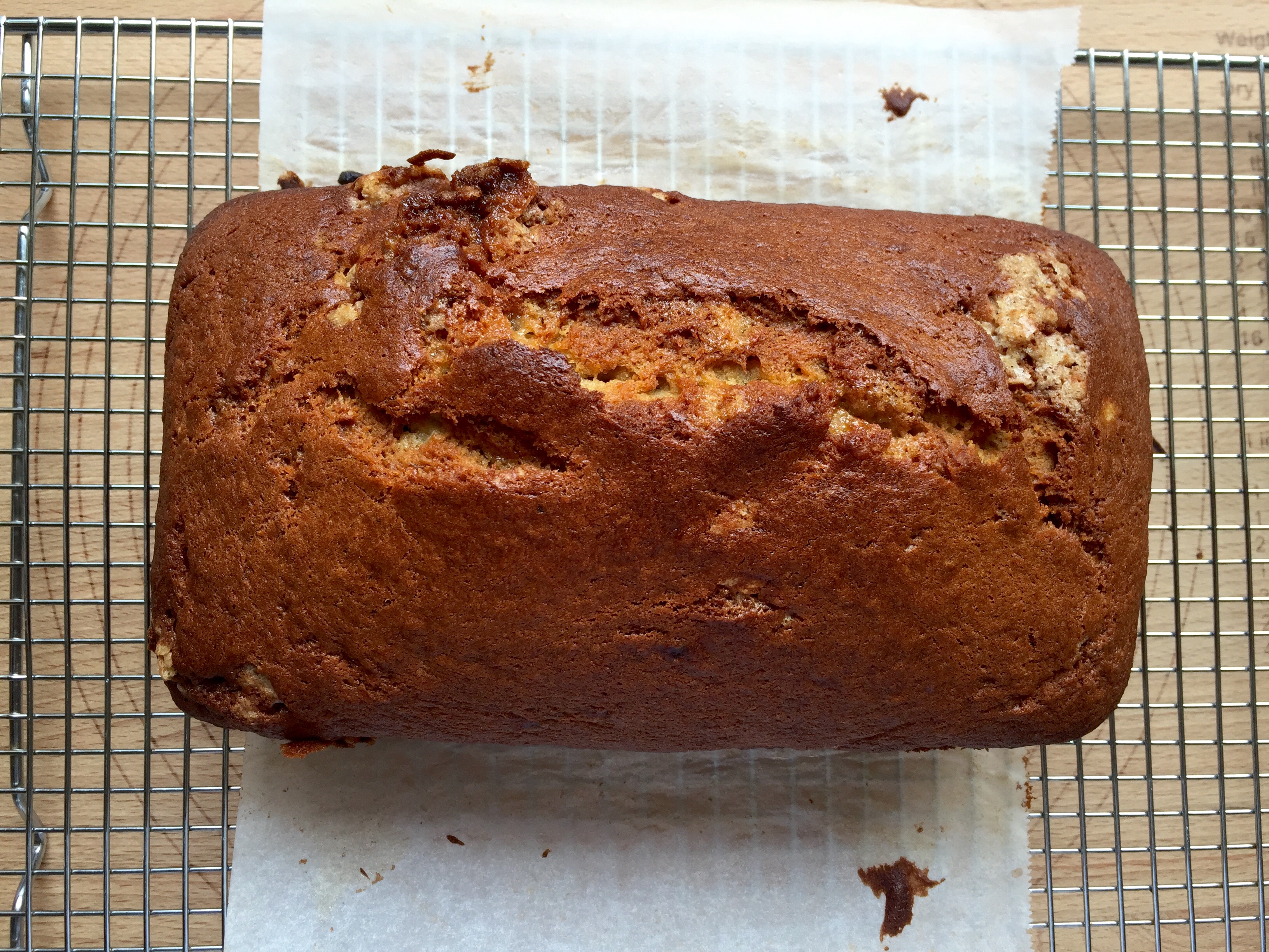 Banana bread on a cooling rack